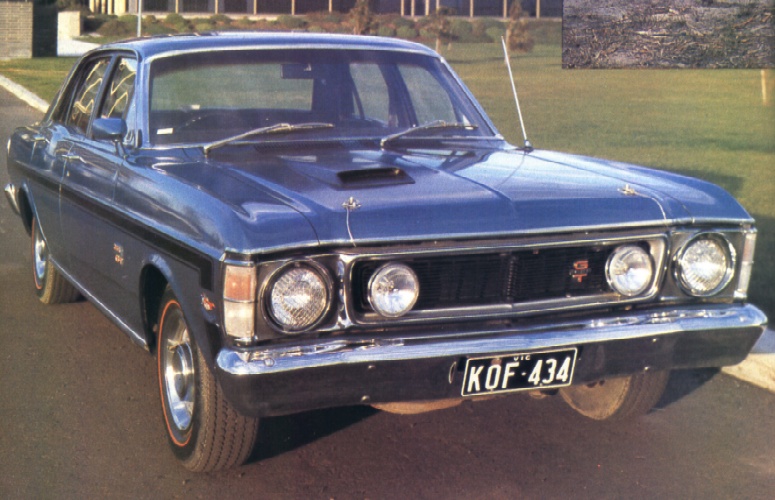 | 1968 XT Falcon GT showing the additional driving lights of the GT. Getting desperate for material when I start scanning 2-pagers like this, should touch it up or replace it one day.